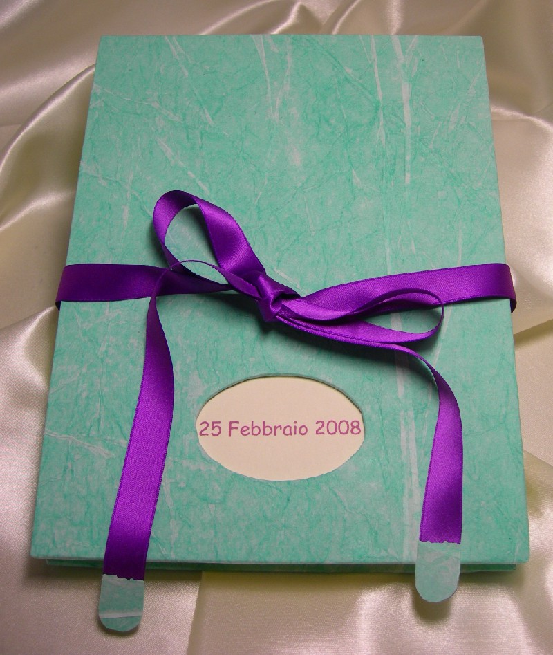 Album dei ricordi rivestito in carta goffrata realizzata a mano.