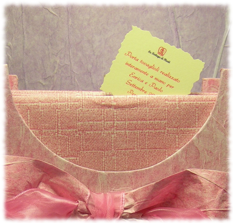 Porta tovaglioli.Particolare della dedica personalizzata