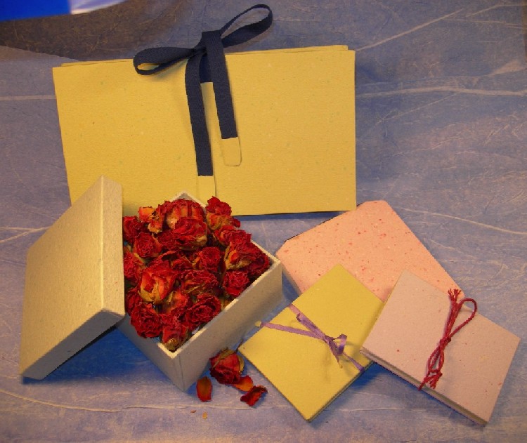 Porta documenti, cofanetto, raccolgitore per CD e libretti della memoria realizzati in carta a mano 100% riciclata.