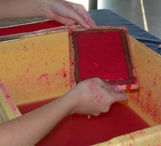 ...la tecnica utilizzata ricalca quella impiegata per la realizzazione della carta a mano classica,...