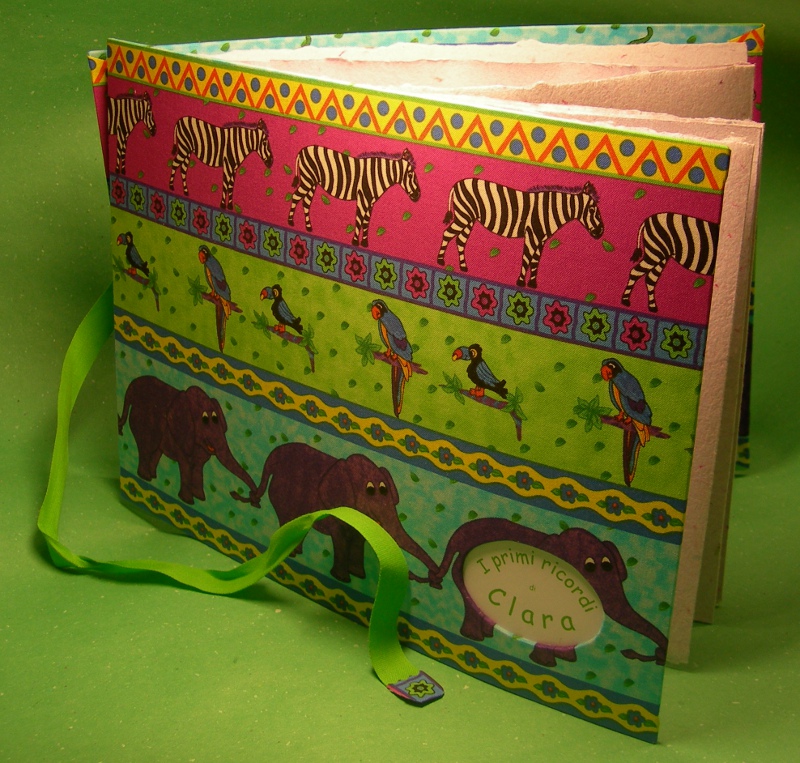Album dei ricordi, interno a fisarmonica in carta a mano 100% riciclata, realizzata a telaio secondo le antiche tecniche dei mastri cartai medioevali.