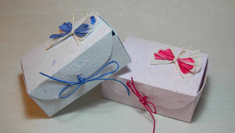 Cofanetti in carta a mano 100% riciclata.